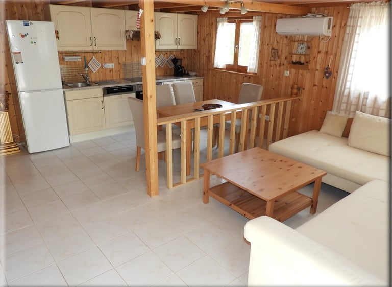 Das Ferienhaus Elfi befindet sich in einer idyllischen Wochenendhausanlage und bietet eine Fläche von 50 Quadratmetern. Das Ferienhaus hat ein gemütliches Schlafzimmer mit einem komfortablen Doppelbett (1,6 m x 2,0 m) sowie einen zusätzlichen Schlafplatz (1,4 m x 2,0 m) im Dachgeschoss.