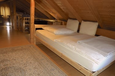 The holiday home Elfi is located in an idyllic weekend house complex and offers an area of 50 square meters. The holiday home has a cozy bedroom with a comfortable double bed (1.6 m x 2.0 m) and an additional sleeping place (1.4 m x 2.0 m) in the attic.