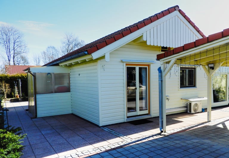 There is also a living room with a well-equipped kitchen, a bathroom with shower and toilet and a spacious, covered sun veranda.Directly next to the house is a covered private parking.
